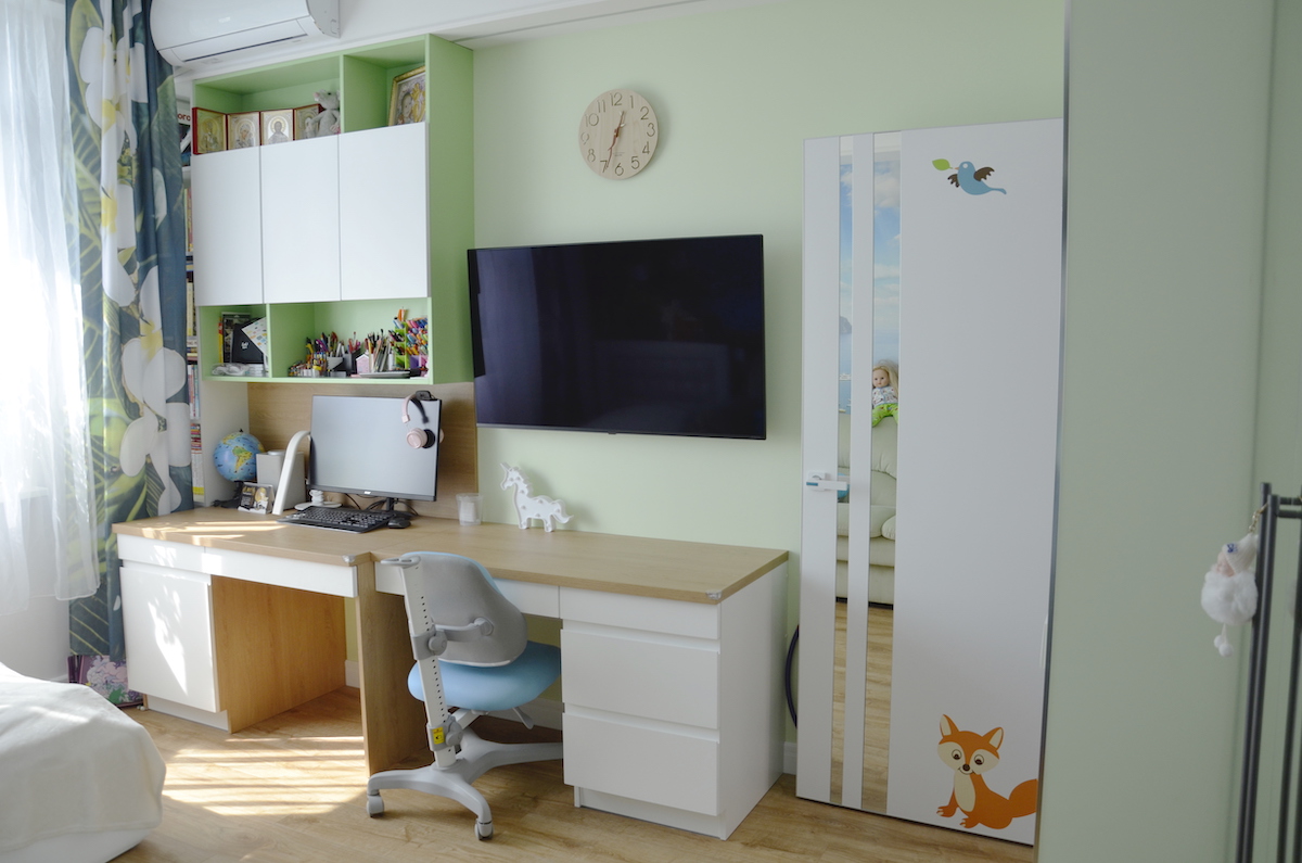 Главная задача проекта - создать функциональный, стильный и удобный интерьер для семьи с тремя детьми. И выделить зону для кабинета главы семейста.
